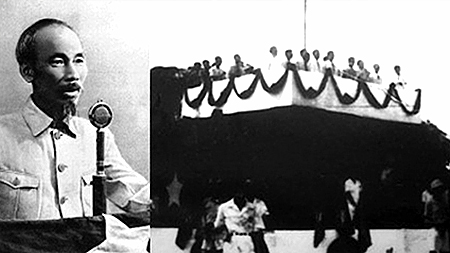 Bác Hồ đang đọc bản Tuyên Ngôn Độc Lập ở Quảng trường Ba Đình. Ảnh tư liệu.